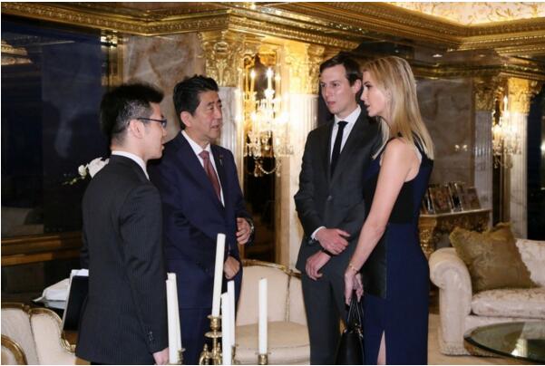 此外,去年當地時間11月17日,日本首相安倍晉三和當時還是候任總統的特朗普在特朗普大廈舉行了會談。會后發布的照片顯示,庫什納也參加了這次會談。