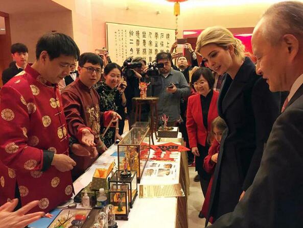 特朗普長女伊萬卡2月1日訪問中國駐美國大使館,和崔天凱大使一起欣賞中國傳統藝術品