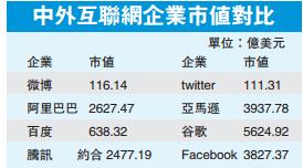 若以盤中價格計算,事實上,去年10月17日,微博已經以113.5億美元的市值超越Twitter,后者同期市值為113.4億美元。