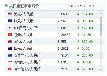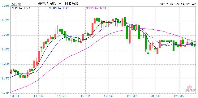 新浪財經訊 2月15日,外匯交易中心數據顯示,人民幣(6.8659, 0.0011, 0.02%)兌美元中間價報6.8632,上日中間價6.8806,升值174個基點,升幅創三周最大。上日官方收盤報6.8674,夜盤收盤報6.8660。