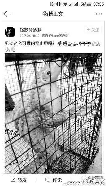 日前,有網友曬出一名被戲稱為“穿山甲公主”的女子,稱其在微博上多次曬出食用穿山甲等野味的照片。