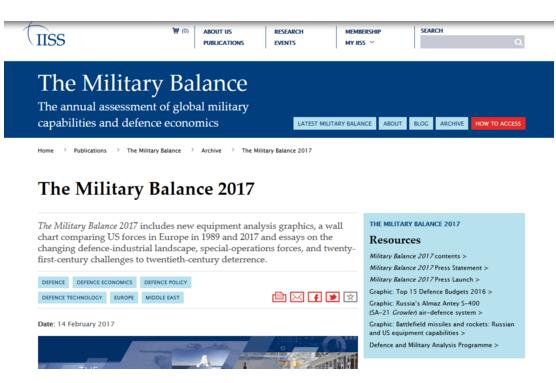 英國著名智庫國際戰略研究所(IISS)"軍事平衡"2017年度報告
