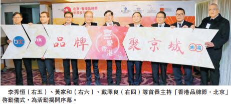 【香港商報网訊】記者謝巧玲報道:香港品牌發展局、香港中華廠商聯合會將於6月起在北京舉辦「香港品牌節北京」一系列大型品牌活動,昨日舉行新聞發布會,并由廠商會會長李秀恒、品牌局主席黃家和,聯同廠商會副會長兼展覽服務有限公司主席戴澤良等主持啟動儀式,為活動揭開序幕。
