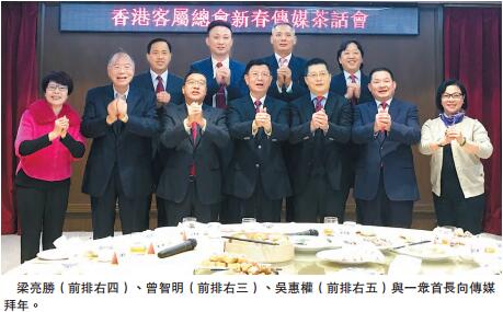 【香港商報网訊】記者李嘉倩報道:香港客屬總會新界分會昨日在位於大埔的會址舉行新春傳媒茶話會,該會主席梁亮勝,執行主席曾智明,常務副主席吳惠權、吳火豪等與傳媒友好共聚,帶大家參觀去年投入服務的新界分會會所,暢談會務發展,品嘗客家美食,氣氛溫馨。梁亮勝表示,新界分會在2016年初成立,於大埔設置會所,「大埔是新界區最多客家人聚居的地方,分會成立的目的是希望能凝聚客家人的力量,更好地為香港服務。」