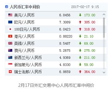2月17日外匯交易中心人民幣huilv中間價2月17日外匯交易中心人民幣匯率中間價