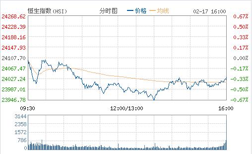 隔夜美股三大指數個別發展,恒生指數今早低開0.12%,報24077.87點;開盤后于高位有整固壓力,曾跌逾百點后反覆回升,高見24106點,其后受壓,上午11時左右掉頭向下,最高跌逾百點,失守24000點關口,低見23944點,其后于24000點關口爭持,午后港股跌幅擴大,24000點關口再次失守,其后再收復。截至收盤,恒生指數報24033.74點,跌0.31%;國企指數報10360.13點,跌0.91%;紅籌指數報3863.1點,跌1.34%。大市成交額836.69億。