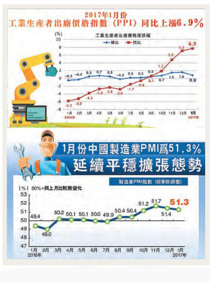 例如,2016年,全國規模以上工業企業實現利潤同比增長8.5%,改變了上年持續負增長局面;全國工業生產者出廠價格自去年9月份結束連續54個月同比下降局面,同比漲幅不斷擴大;製造業採購經理指數(PMI)從去年3月份以來基本上都處在榮枯線50%之上,市場不斷回暖。
