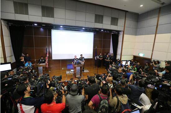 來自國內外的媒體擠滿警方召開新聞發布會的禮堂。(圖:星洲日報)