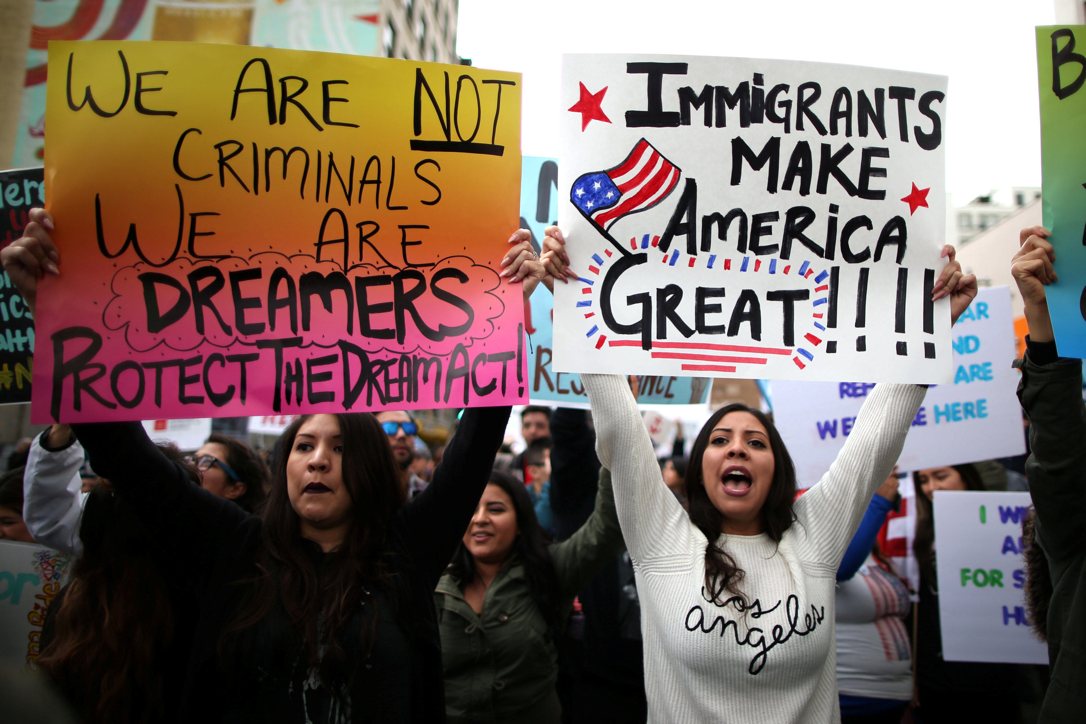 在洛杉矶,人们上街示威,抗议特朗普的移民入境政策。路透社
