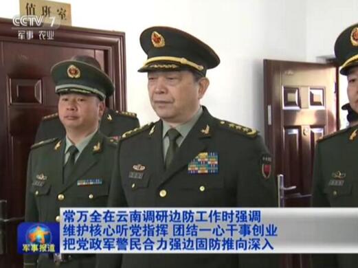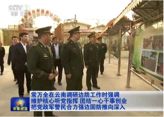 中央軍委委員、國務委員兼國防部長常萬全近日到云南德宏州調研邊防工作。他強調,要認真學習貫徹黨的十八屆六中全會精神和習主席系列重要講話精神,堅定不移地維護核心、聽黨指揮,齊心協力地守好邊防、穩固邊疆,努力把黨政軍警民“五位一體”合力強邊固防推向深入。
