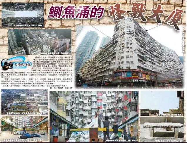 香港地少人多,素有“石屎森林”之稱,不論商業區還是民居樓,可以形容為“摩天大廈”的建筑比比皆是。外地游客來港旅游,大多對高聳林立、密密麻麻的大廈嘖嘖稱奇,惟居民對此環境已然習以為常,似乎無甚感覺。在港島鰂魚涌,就有這樣一組有近50年歷史的組合民居建筑群,早前被荷里活(好萊塢)《變形金剛4》選為場景,令這一“舊到發霉”的民居出了大名,更被人形容為“怪獸大廈”。