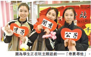 【香港商報網訊】「眾里尋他千百度,驀然回首,那人卻在,燈火闌珊處。」宋代著名詞人辛弃疾《青玉案》中的名句,成為今年港九潮州公會中學元宵慶祝活動的游戲主題——「衆里尋他」。全校學生根據指示,於校舍不同地點自行找尋配對夥伴,再完成指定任務。透過游戲,不但讓學生體驗古時元宵燈會互覓才子佳人的樂趣,也促進了學生之間的團隊合作精神及對學校的歸屬感。