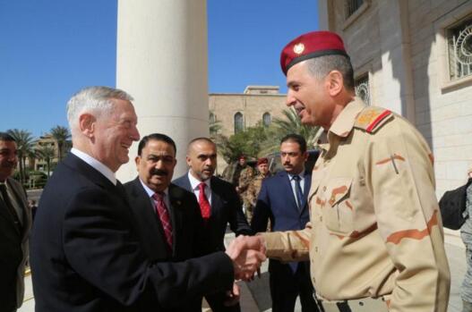 但是,美國新任防長馬蒂斯—這位曾參與伊拉克和阿富汗作戰的前退役將軍,在巴格達試圖安撫伊拉克人民。