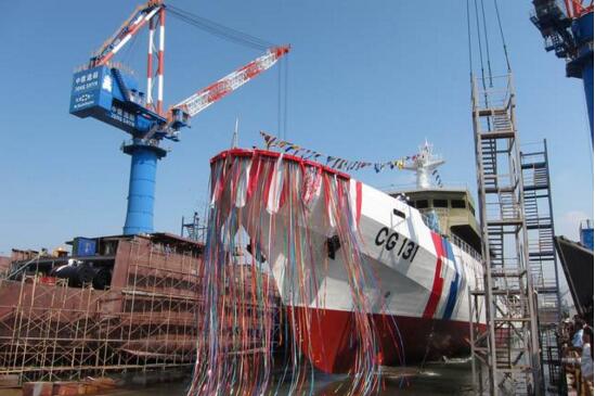 2014年苗栗艦下水典禮。據臺媒報道,苗栗艦全長87.6米,吃水3.55米,配備2臺功率為7280千瓦的柴油機,最高航速可達24節,最大續航范圍6000海里,乘員為50人。該一千噸級海警巡邏艦配備有20毫米機炮和40毫米機炮各1門。