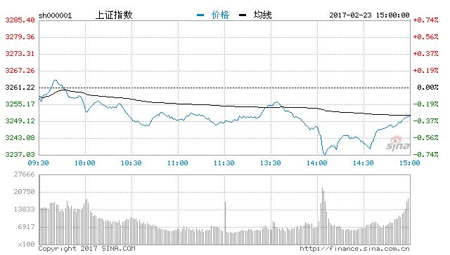 新浪財經訊 2月23日消息,滬深兩市早盤低開,隨後盤中持續震蕩下跌,下午13:30之後受水泥股暴跌影響,滬深兩市指數跳水。創業板受醫藥板塊拉升人氣影響,表現較強。尾盤受5日線支撐,兩市指數有所反彈。