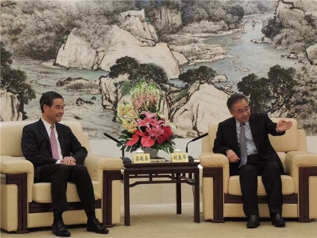 梁振英与胡春华(右)会面。