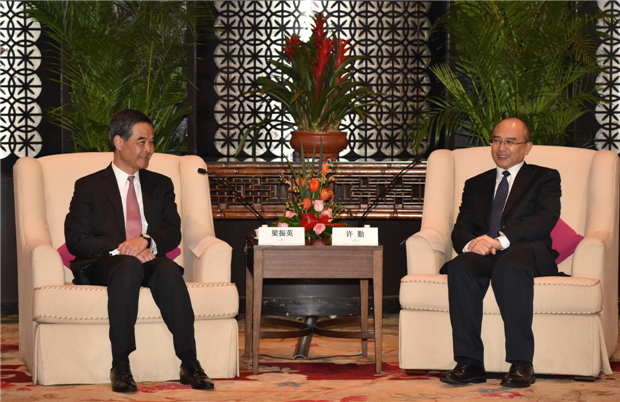 梁振英昨午拜会许勤(右)