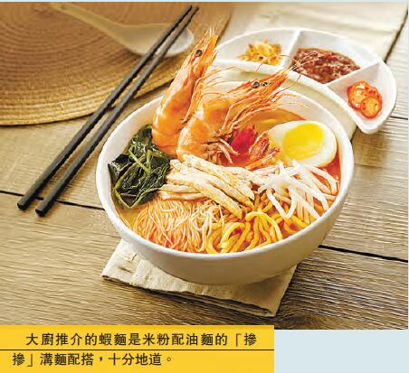 筆者由一碗赤紅辛辣的蝦麵開始品嘗,精髓是其喇沙湯底,以濃郁的雞湯加蝦頭、蝦殼熬煮12小時而成,濃香鮮味,加上惹味的參峇辣椒醬,入口有微微辛辣,卻恰如其分地將蝦的鮮甜調了出來。餐廳以正宗的「摻摻」溝面製法,即麵底用上米粉配油麵,皆因米粉吸湯能力高,而油麵則較滑溜爽口,兩者同吃才過癮。另一道清新之選的怡保芽菜,選用怡保馳名芽菜,以當地山泉水種植,因此特別肥美多汁,煮熟上碟時簡單配以馬拉盞醬或甜醬油同吃已很美味。