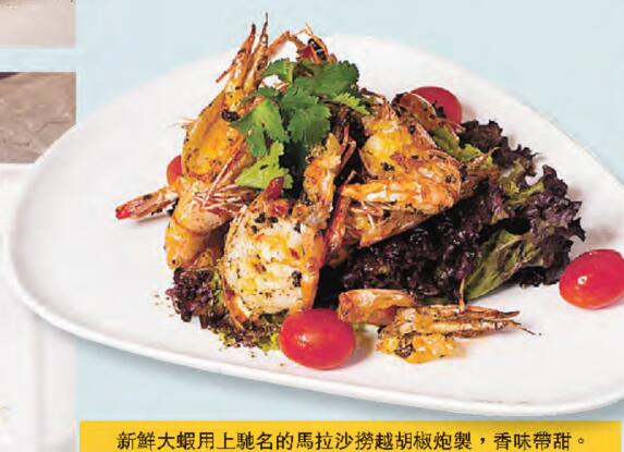 筆者個人的心水之選是胡椒蝦,大廚選用馬拉砂拉越的原粒胡椒炮製本地的新鮮大蝦,菜式看似平實,味道卻有驚喜,因砂拉越的胡椒以香氣為主,沒有嗆鼻的感覺,令蝦肉入口惹味之餘還帶點甜,充滿南洋特色。至於另一常見的馬拉海鮮菜燒魔鬼魚,大廚在魚表面搽上一層咖哩粉調味,燒得香脆,也添了份風味。