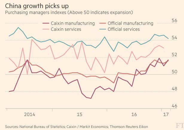 周三,官方和民間的指標顯示,今年開年中國經濟表現強勁。這為政策制定者在實施多年刺激舉措后將注意力轉向金融泡沫和不斷攀升的債務創造了空間。