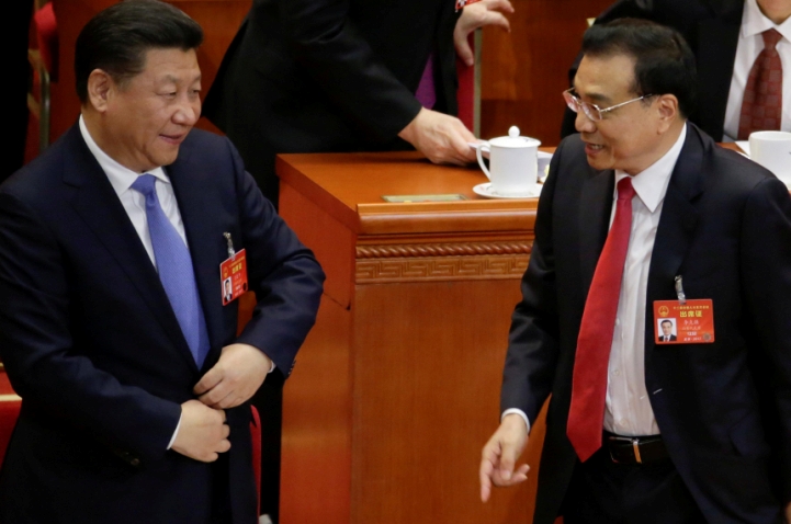 在第十二屆全國人民代表大會第五次會議開幕式上,國家主席習近平與國務院總理李克強互動交流。路透社