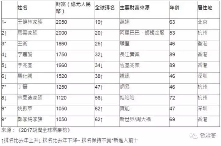 89歲的李嘉誠財富1750億位列大中華區第四,全球第32位,比去年下降9位。長江實業今年2月發佈資料顯示,李嘉誠2017年香港首盤意花園在短短一周的時間已銷售62棟,吸金高達15.9億港元,目前樓盤僅剩5棟獨立屋,其中兩成買家為內地客。