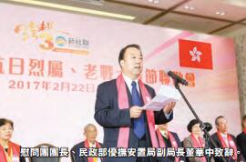 【香港商報網訊】國家民政部優撫安置局副局長董華中和廣東省民政廳廳長卓志強早前(2月22日)率團來港探望原抗日烈士家屬(下稱:烈屬)和老戰士,並參加了「丁酉年香港原抗日烈屬、老戰士春節聯歡會」,300位原抗日烈屬、抗日老戰士和嘉賓出席聯歡會。