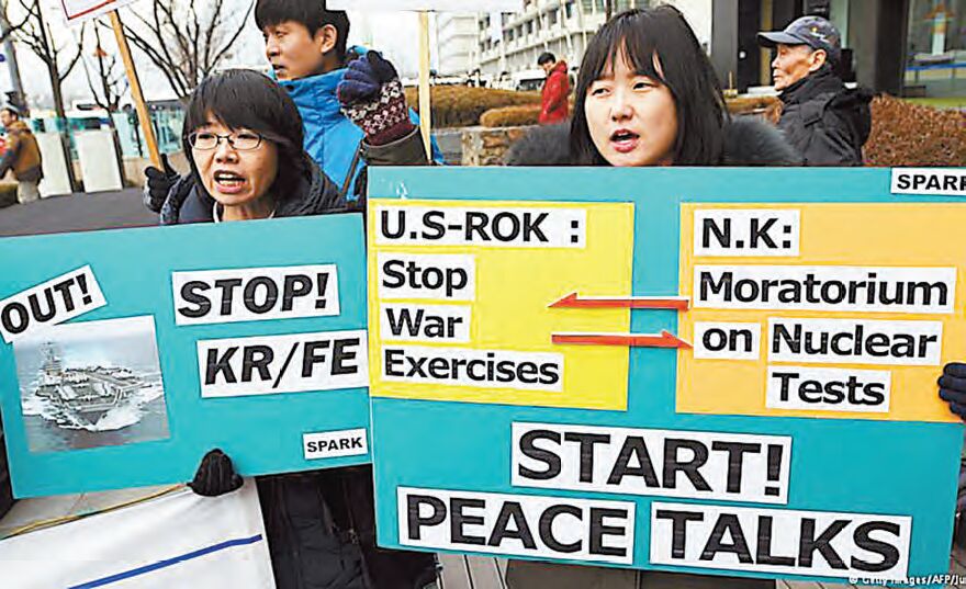 【香港商報网訊】鑒於朝鮮半島緊張局勢升級令人擔憂,中國外長王毅周三提出了朝鮮停止導彈發射活動,美韓停止聯合軍演的「雙暫停」建議。但美國隨后明確表示不打算停止演習,并拒絕與朝鮮對話。韓國國防部昨天也表示,韓美聯合軍演是防御性質的例行演習,仍將照常進行。應美日韓要求,聯合國安理會周三就朝鮮發射彈道導彈召開了緊急閉門會議。日本共同社報道稱,美日韓三國要力爭針對朝鮮構築「國際包圍網」。
