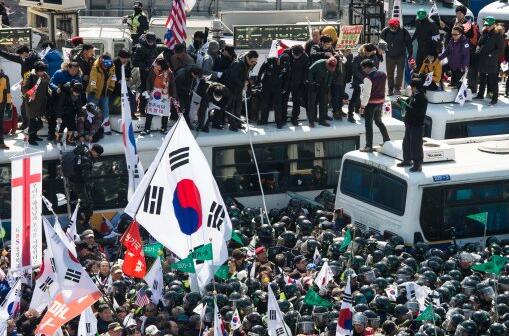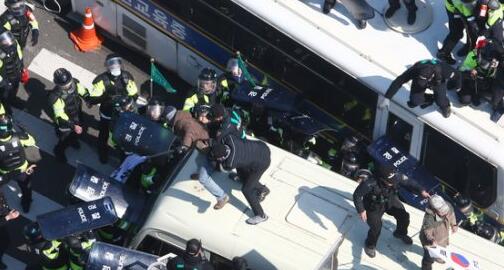 【觀察者網綜合】據央視新聞報道,在韓國憲法法院宣布通過對前總統樸槿惠的彈劾后,大量樸槿惠的支持者在憲法法院門外集會表達對判決的不滿。一些示威者試圖沖破警方設置在法院門外的防線,與警方發生沖突。據央視記者現場觀察,有民眾在沖突中受傷。