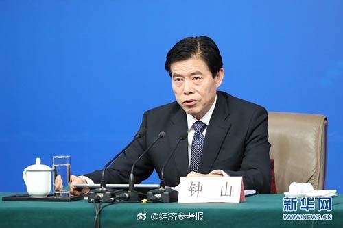 [钟山]:下一步,我们将从供给侧发力,坚持创新驱动,始终抓住“转动力、调结构”这一根本之策、长远之计,加快培育外贸竞争新优势,实现我国外贸由量的扩张到质的提高,不断地巩固我国的贸易大国地位,推动我国贸易强国的进程。