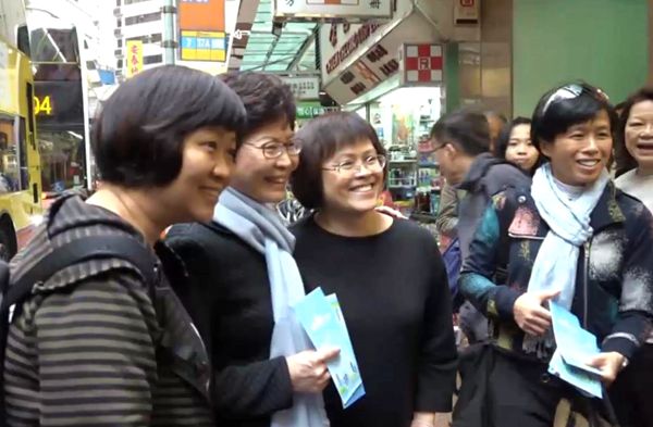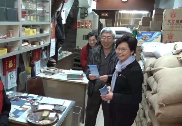 昨午,林鄭月娥在其競選辦人員陪同下到訪上環,與市民接觸,與街坊傾談。她先到永樂街商舖派發傳單,與市民打招呼及握手;有市民主動上前跟她合照。林鄭表示,2007年任發展局局長時,曾帶領渠務署一同處理永樂街水浸問題;所以,今次趁競選期間再到此了解現況。她又提到2009年由她牽頭的「保育中環」項目,將中區警署舊政府總部等翻新活化。