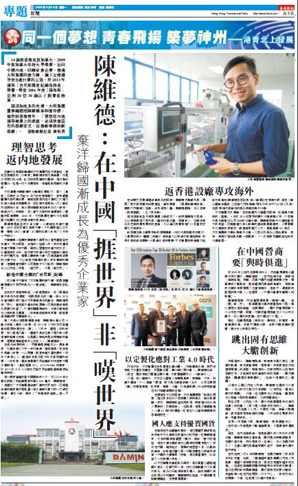 頭頂如此多的光環,大明集團董事總經理陳維德卻相當冷靜。他告訴香港青年:「要想在內地獲得商業上的成就,必須放棄固有的思維定式,迎接新事務和新思維」。香港商報記者 黃裕勇