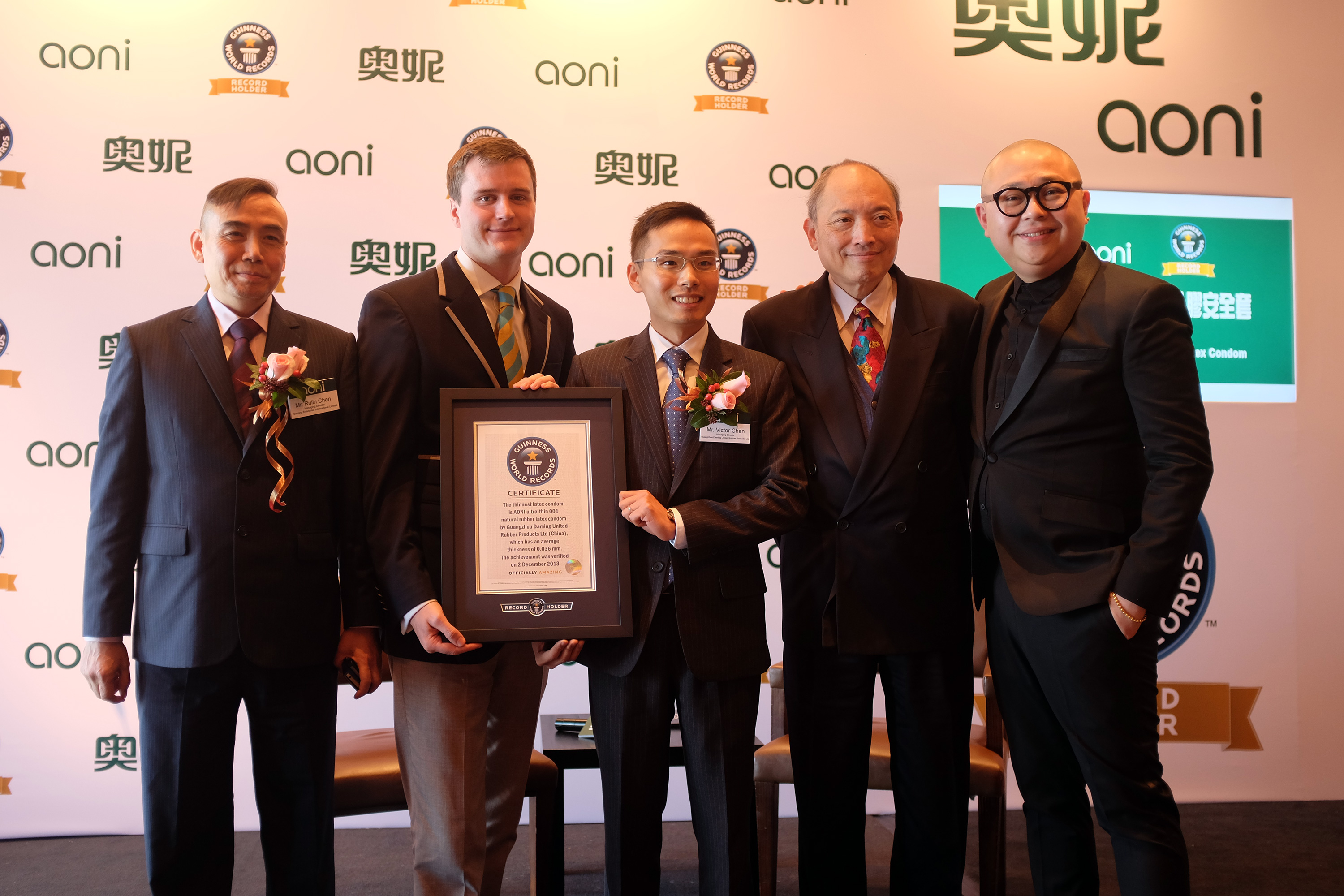 在原有生產線上研發,一旦開機,就意味著大量的損失。功夫不負有心人,經過改良產品配方和生產設備的研發,一年多後,避孕套最薄世界紀錄終於由這家中國企業締造。「奧妮超薄001」以0.036MM的厚度,於2013年12月2日被吉尼斯世界紀錄認證為薄度紀錄保持者。