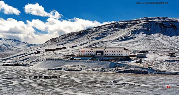 新疆軍區某邊防團河尾灘邊防連駐地海拔5418米,是我軍海拔最高的哨所,連隊擔負著中印邊境95公里邊境線守防任務。這里,空氣含氧量不足平原地區50%,人即便空手徒步,也相當于負重30多公斤;這里,每年封凍期長達10個多月,冬季氣溫達到-40℃。