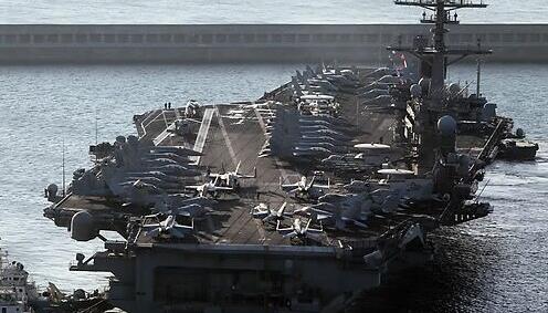 “卡爾·文森”號航空母艦將于本月15日駛入釜山港,滿載排水量達10萬噸,長333米、寬77米,被稱為“海上軍事基地”。