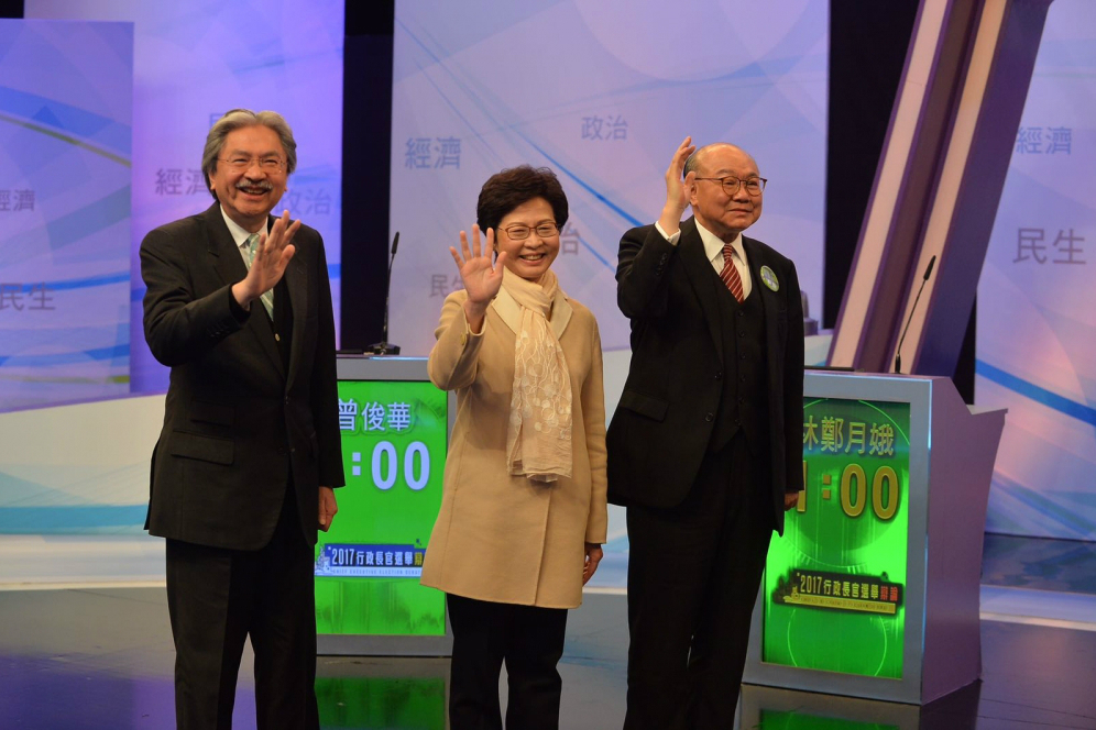 三位候選人參加「2017行政長官選舉辯論」。圖:電視截圖