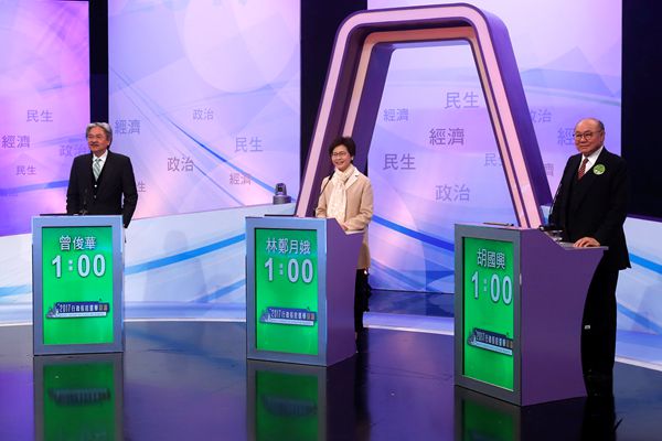 在昨晚舉行的選舉論壇上,林鄭月娥、曾俊華與胡國興3位候選人首次就政治、經濟與民生議題同場激辯。