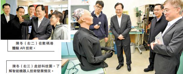 【香港商報网訊】中聯辦副主任陳冬本月15日在中聯辦青年工作部相關負責人陪同下,走訪數碼港及科學園,以了解香港互聯網經濟和青年創新創業情况,并參觀部分青年創科項目,與青年座談交流。