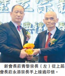 上屆會長莊永添致辭時感謝全體理監事過去的努力及支持下,令會務得以順利推行,他相信在新一屆會長莊青黎的帶領下,定能團結廣大宗親,同心同德,會務定能更上層樓,越做越好。