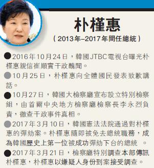 韓國檢方對樸槿惠涉嫌犯罪的指控多達13項,包含受賄罪、濫用職權罪、泄露機密罪等。