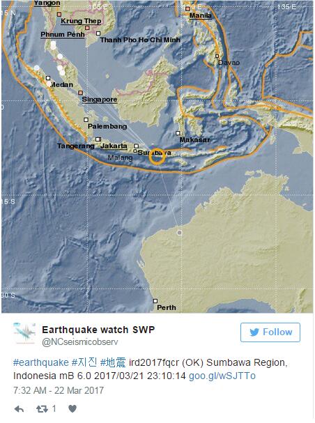 新華社快訊:據印度尼西亞氣象、氣候和地球物理局消息,印尼巴厘島海域22日早上發生6.4級地震。