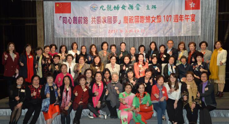 【香港商報網訊】九龍婦女聯會日前假旺角帝京酒店舉辦「同心創前路 共圓家國夢」慶祝國際婦女節107周年活動。行政長官夫人梁唐青儀、中聯辦九龍工作部副部長盧寧、油尖旺民政事務專員蔡亮等蒞臨主禮,與近300姐妹聚首一堂,共同慶賀,欣賞健身秧歌表演,場面熱鬧。