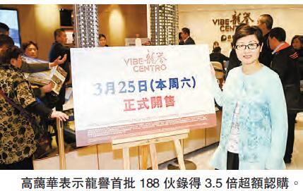 【香港商報网訊】啟德「龍譽」首批188個住宅單位於本周六(25日)發售。保利置業(香港)市場銷售部主管高藹華表示,龍譽自上星期公布價單及開放示範單位以來,至今收逾800張入票,錄得3.5倍超額認購,以本地用家為主,內地客預料少於5%,正部署下一輪加推計劃,該集團采惜售策略。