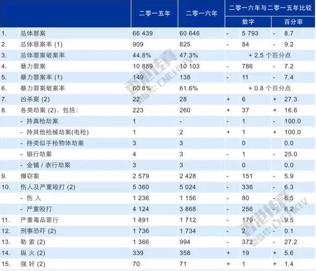 另外,香港2016年沒有發生真槍搶劫的案件。