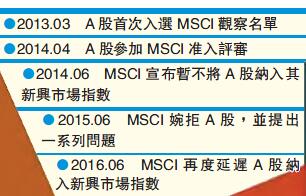 值得一提的是,A股曾三次闖關MSCI失敗。MSCI在去年6月拒絕之際稱,將把A股保留在2017年的審核名單上。介面新聞昨天報道稱,中國監管部門過去幾個月在停牌重組時間限制等方面取得了很大的進步,這也有利於增加A股納入的可能。而MSCI今年提出了新的框架,即基於深港通等「互聯互通」股票池納入A股,而非借道必須提出申請和存在額度限制的QFII/RQFII通道,以解決資金進出問題。