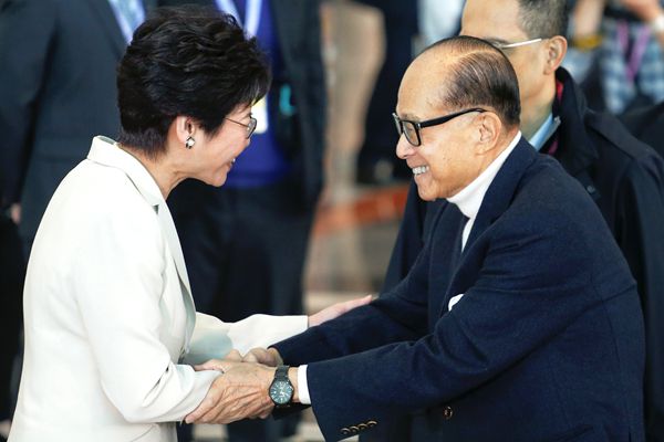 【香港商報網訊】記者葉佩瑜、何加祺報道:行政長官選舉告一段落,昨日不少選委紛紛行使其投票權,包括長和系主席李嘉誠、恒基地產主席李兆基及嘉華國際主席呂志和等商界超級富豪。李嘉誠與長子李澤鉅一同到場,逐一與3位候選人握手,並多次向傳媒問好,但沒回應票投哪一位候選人;呂志和則表明票投林鄭月娥,冀社會勿再批評對方。