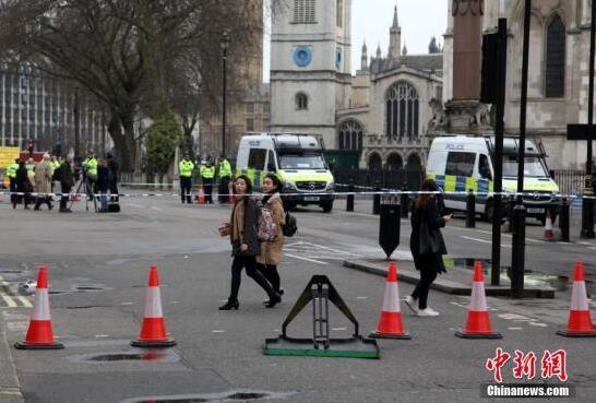 當地時間3月23日上午,英國議會大廈周邊仍處于封鎖狀態,警察在附近街道拉上警戒線,不允許車輛、行人進入。3月22日,英國議會大廈外發生恐怖襲擊事件,造成5人死亡、40余人受傷。 中新社記者 周兆軍 攝