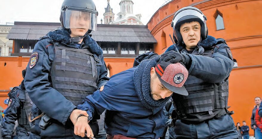 俄罗斯警方拘捕非常示威者。路透社