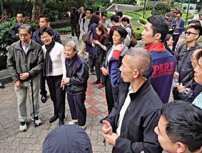 圖:為林鄭站臺的一班后生仔,有不同派別陣營理念嘅人,林太用行動證明修補社會撕裂
