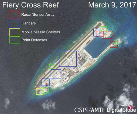 【環球網報道記者王一】據英國路透社當地時間3月27日報道,美國智庫戰略與國際研究中心(CSIS)分支機構亞洲海事透明度倡議組織(AMTI)當天稱,中國在南海島礁主要軍事設施已建設完成,可隨時在南海島礁部署戰機等其他重型軍事裝備。